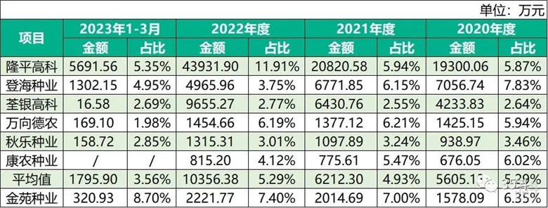 表3:金苑種業(yè)研發(fā)投入及可比企業(yè)對比(單位:萬元)