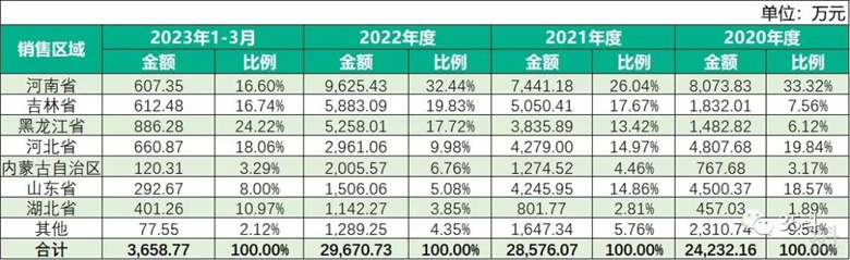 從銷售區(qū)域分來看來,金苑種業(yè)的產(chǎn)品銷售主要集中在黃淮海地區(qū)、東北地區(qū)等玉米和小麥集中種植區(qū)域。2020年、2021年和2022年,主銷東北地區(qū)的Z658產(chǎn)品表現(xiàn)良好,東北地區(qū)如吉林省、黑龍江省、內(nèi)蒙古自治區(qū)的收入及占比逐年上升;而受2021年黃淮海區(qū)域爆發(fā)的玉米南方銹病影響,河北省和山東省收入及占比逐年下降;其中,河南省收入及占比呈先降后升趨勢,主要是因為2021年河南省的偉科702和鄭原玉432收入因玉米南方銹病影響有所下降,2022年偉隆169等小麥種子收入上升較快而引起的波動;湖北省收入及占比逐年上升,主要是因地理位置等原因,2021年重大玉米南方銹病對其影響較小,鄭原玉432在該地區(qū)推廣較好??梢园l(fā)現(xiàn),金苑種業(yè)的種子在對應(yīng)的集中種植區(qū)均有優(yōu)勢銷售區(qū)域,市場表現(xiàn)良好。