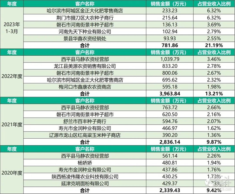 表6:金苑種業(yè)銷售前五大客戶(單位:萬元)