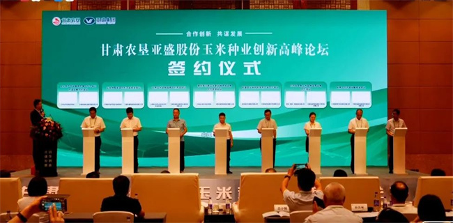啟動儀式上,甘肅農(nóng)墾亞盛股份發(fā)布了亞盛3、亞盛12、中墾玉77、中墾玉669、墾玉706、黃羊28、黃羊178、甘墾120、亞盛13、墾科育1601共10個玉米新品種,并與蘭州大學(xué)生命科學(xué)學(xué)院、甘肅省農(nóng)業(yè)科學(xué)院作物研究所、山西農(nóng)業(yè)大學(xué)山西有機旱作農(nóng)業(yè)研究院、江蘇連云港市農(nóng)業(yè)科學(xué)院、杭州瑞豐生物科技有限公司、華創(chuàng)(海南)生物科技有限公司、三亞增信種子技術(shù)研究有限公司等7家單位簽訂了戰(zhàn)略合作協(xié)議。