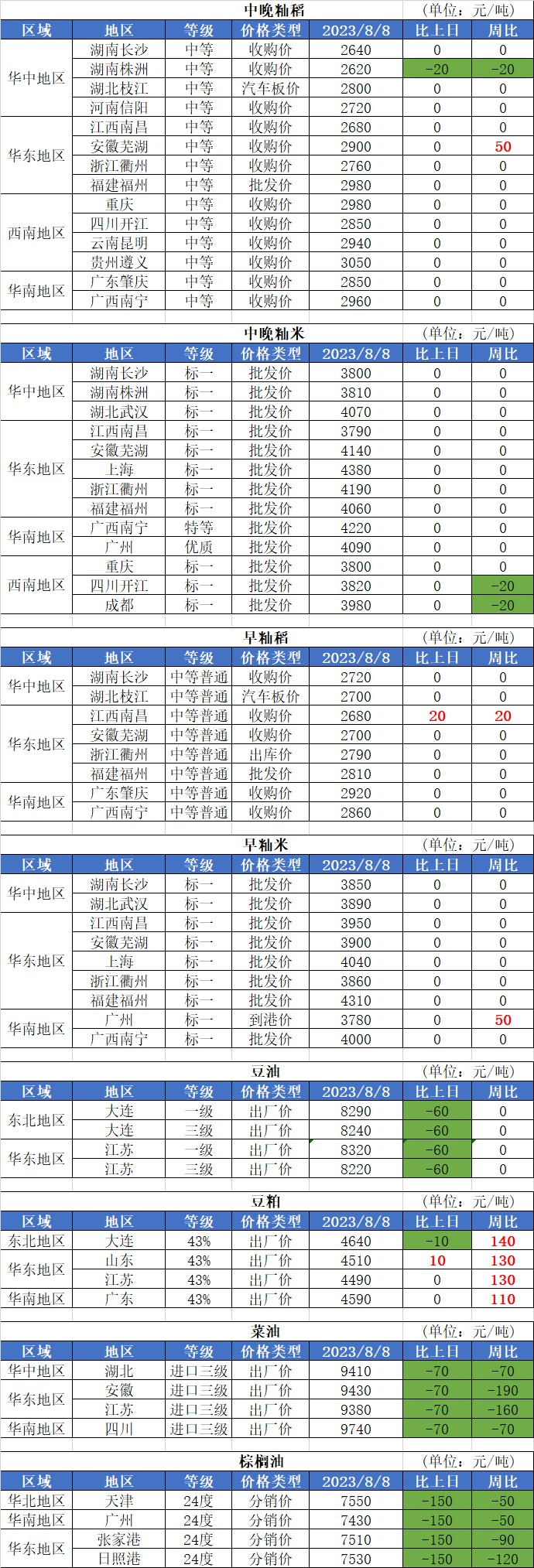 3、8月8日投放政策性稻谷60.21萬(wàn)噸,實(shí)際成交9.72萬(wàn)噸,成交率16.15%。其中中晚秈稻成交3.35萬(wàn)噸,均價(jià)2527元/噸;粳稻成交6.38萬(wàn)噸,均價(jià)2611元/噸。