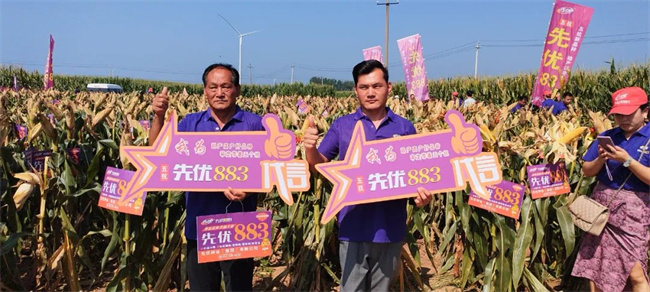 先優(yōu)種業(yè)業(yè)務(wù)經(jīng)理張成功和區(qū)域經(jīng)理陳寶中分別從不同角度對(duì)先優(yōu)883在各地優(yōu)秀表現(xiàn)做分享。通過(guò)各地種植戶反饋信息來(lái)看,先優(yōu)883具有以下優(yōu)勢(shì):株高穗位比例協(xié)調(diào),氣生根發(fā)達(dá),扎根深,節(jié)間短,莖稈粗壯韌性好,抗倒能力強(qiáng);抗病性好,抗南方銹病、中抗紋枯病、中抗莖腐病、抗穗腐病;籽粒飽滿,結(jié)實(shí)性好,一粒封頂;高產(chǎn)優(yōu)質(zhì),色澤金黃,容重高,棒子大,出籽率高。