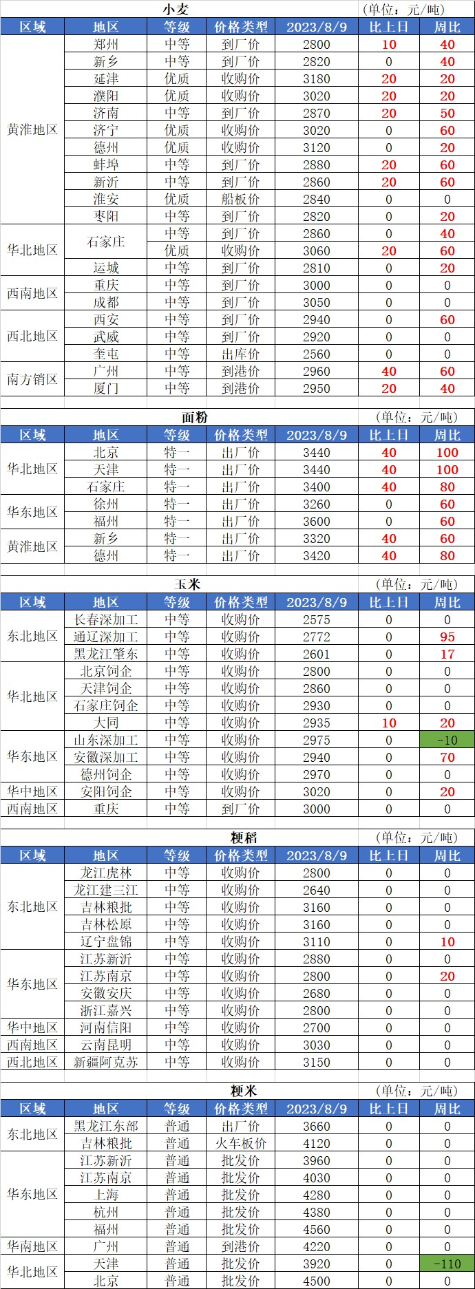 2、8月9日國內玉米價格繼續(xù)上調,其中:山東地區(qū)、華北地區(qū)、南方銷區(qū)玉米價格基本穩(wěn)定,局部價格上漲,漲幅10-40元/噸;東北地區(qū)玉米價格基本穩(wěn)定。