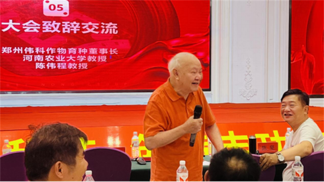 鄭州偉科作物育種董事長(zhǎng)、河南農(nóng)業(yè)大學(xué)陳偉程教授特意為大會(huì)進(jìn)行致辭交流,陳偉程教授親自講述了偉科939、偉科979品種的特征特性和期望,對(duì)豐偉種業(yè)的推廣能力充滿(mǎn)信心。陳偉程教授強(qiáng)調(diào):“跟著豐偉走,好品種一直有!跟著豐偉走,好品種一定有!”