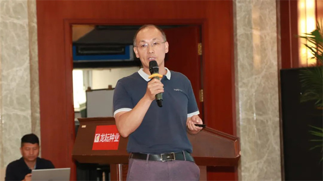 北京農(nóng)林科學(xué)院玉米研究所首席科學(xué)家趙久然研究員在講話中,對(duì)雙方作為科企合作單位,充分利用自身資源,優(yōu)勢(shì)互補(bǔ),聯(lián)合攻關(guān),取得了可喜成績(jī)表示祝賀,并從目前國(guó)內(nèi)育種現(xiàn)狀、種植模式、品種布局、玉米品種推廣影響因素、選種原則和未來(lái)育種方向等八個(gè)方面向與會(huì)人員做了詳細(xì)分享。