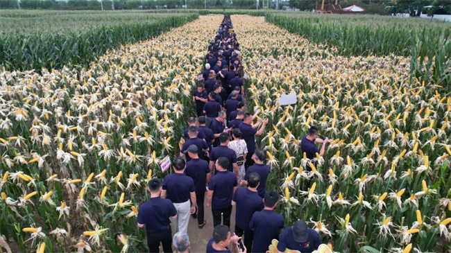 會(huì)前,與會(huì)人員來(lái)到龍?jiān)欧N業(yè)試驗(yàn)站現(xiàn)場(chǎng)觀摩玉米新品種(組合)的田間表現(xiàn)。在觀摩現(xiàn)場(chǎng),品種整齊劃一,生機(jī)勃勃,豐收在望,接受著來(lái)自各地合作伙伴的“檢閱”。