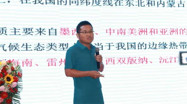 郭向陽(yáng)博士分享了《利用溫?zé)嵊衩追N質(zhì)融合應(yīng)對(duì)氣候變化的品種案例》——“康農(nóng)玉8009”的選育情況。郭博士詳細(xì)分享熱帶玉米種質(zhì)改良、創(chuàng)新與應(yīng)用進(jìn)展,展示熱帶種質(zhì)資源取得的科技成果。并就康農(nóng)玉8009導(dǎo)入熱帶種質(zhì)基因和北方優(yōu)質(zhì)高產(chǎn)基因的優(yōu)勢(shì)聚合,從而提高品種抗逆能力等方面做詳細(xì)分析。