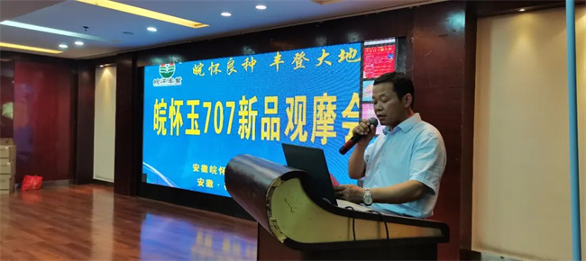 會(huì)上,皖懷公司經(jīng)理魯超回顧了公司發(fā)展歷程,他表示,皖懷種業(yè)作為一家科技創(chuàng)新型種業(yè)企業(yè),一直注重科研投入和加大育種創(chuàng)新能力,公司先后育成具有市場(chǎng)競(jìng)爭(zhēng)優(yōu)勢(shì)的皖懷玉707和金享玉515玉米新品種,公司市場(chǎng)地位凸顯。據(jù)介紹,皖懷玉707:苗期苗壯,株型緊湊,株高適中,穗位較低,基部節(jié)間較短,莖稈粗壯,韌性強(qiáng),根系發(fā)達(dá),抓地牢,提高了抗倒能力;花粉量大,花期長(zhǎng),花粉活力強(qiáng),結(jié)實(shí)性好;密度彈性大,廣適;抗病性好,抗南方銹病,中抗莖腐病,抗穗腐?。话舸筝S細(xì)粒深,出籽率高,高產(chǎn)穩(wěn)產(chǎn)。
