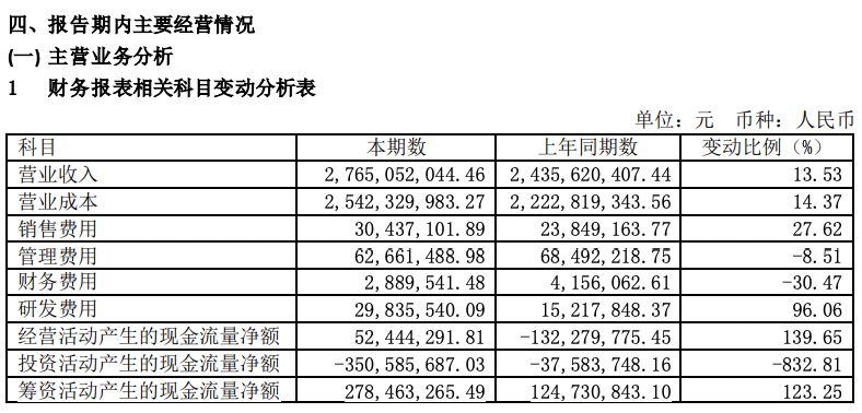 據(jù)報(bào)告披露,公司2023年上半年的營(yíng)業(yè)收入比上年同期增加 45.88%,主要是公司推出了多個(gè)質(zhì)量較好的新品種獲得市場(chǎng)認(rèn)可, 取得較好的收入。而營(yíng)業(yè)成本比上年同期增加 35.30%,主要是公司主營(yíng)業(yè)務(wù)收入增加,主營(yíng)業(yè)務(wù)成本相應(yīng)增加。