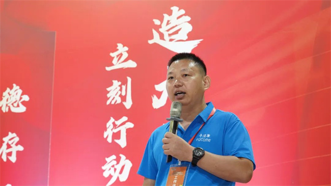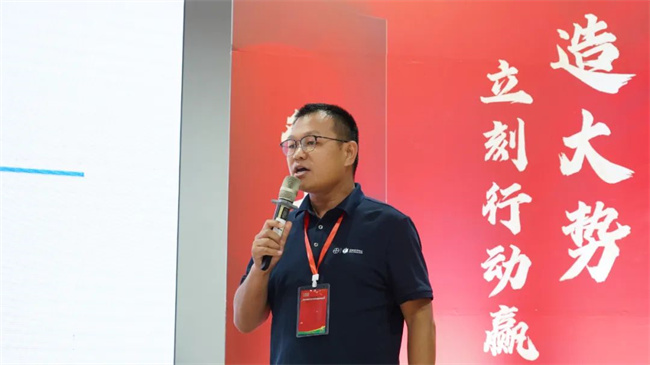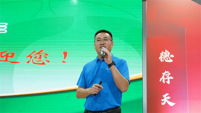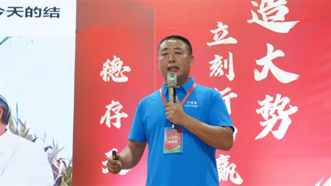 識(shí)形勢(shì)、搶先機(jī)、動(dòng)市場、贏未來。豐德康種業(yè)副總經(jīng)理孟慶樂帶領(lǐng)大家回顧了2022-2023年度玉米種子市場現(xiàn)狀,分析了2023-2024年度玉米種業(yè)市場形勢(shì),提出了定心+聚焦應(yīng)對(duì)措施,并就如何定心合作伙伴,定心豐德康科技創(chuàng)新型公司,定心市場,聚焦觀摩早訂購、聚焦測產(chǎn)樹典型、聚焦兌現(xiàn)早行動(dòng)搶占先機(jī)做周密安排和部署。他表示,面對(duì)行業(yè)競爭格局新變化,轉(zhuǎn)變思維模式、創(chuàng)新營銷模式、學(xué)會(huì)定心,學(xué)會(huì)聚焦、腳踏實(shí)地,在對(duì)的時(shí)間、對(duì)的平臺(tái)、選對(duì)的人、做對(duì)的事,立足當(dāng)下,統(tǒng)一思想,統(tǒng)一行動(dòng),共贏未來!