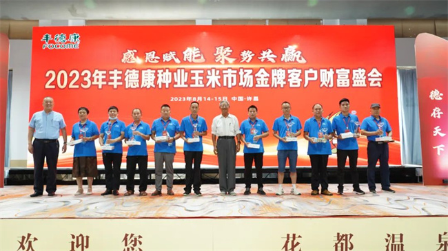 2023年8月15日,“感恩賦能 聚勢(shì)共贏”2023年豐德康種業(yè)玉米市場金牌客戶財(cái)富盛會(huì)在鄢陵隆重召開。豐德康董事長鄭天存、總經(jīng)理谷登斌、副總經(jīng)理孟慶樂、玉米部大區(qū)經(jīng)理程小亮,拜耳市場開發(fā)部經(jīng)理田體偉及近千位金牌客戶代表參加會(huì)議。會(huì)議在雄壯的國歌聲中拉開帷幕。