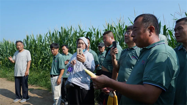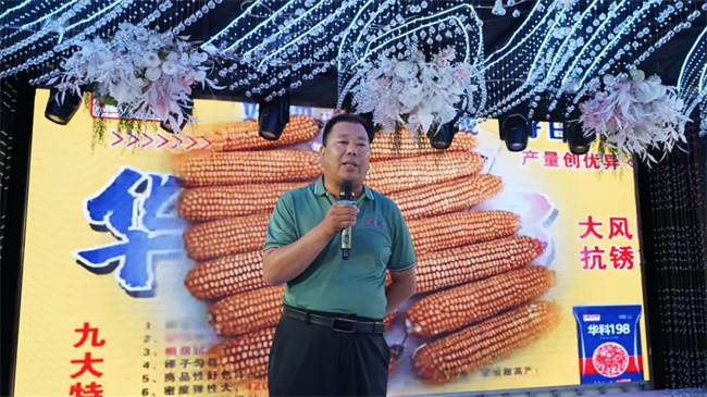 華科農(nóng)業(yè)研發(fā)中心負(fù)責(zé)人張紹峰對華科198的選育、特征特性和栽培技術(shù)要點做詳細(xì)介紹。他表示,華科198聚合優(yōu)勢種質(zhì)資源選育而成,綜合性狀優(yōu)勢明顯:苗齊苗壯,株型緊湊,株高適中,田間通風(fēng)透光,光合作用好;氣生根發(fā)達(dá),扎地深,扎地牢;抗病性好,中抗莖腐病,中抗穗腐??;穗位整齊,結(jié)實性好,棒大棒勻,籽粒飽滿,容重高等特點。最后,張老師還對華科農(nóng)業(yè)后續(xù)優(yōu)良品種做分享。