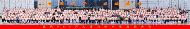 現(xiàn)場(chǎng)舉行了隆重的現(xiàn)代959萬(wàn)人接力創(chuàng)豐收儀式。