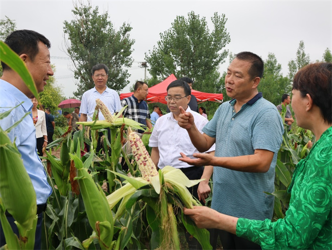 山東省農(nóng)技推廣中心作物一部部長(zhǎng)彭科研,濱州市農(nóng)業(yè)農(nóng)村局黨組書(shū)記、局長(zhǎng)張程鵬,濱州市農(nóng)業(yè)技術(shù)推廣中心黨委書(shū)記、主任張秀葵,濱州市農(nóng)科院黨支部書(shū)記劉樹(shù)澤,無(wú)棣縣副縣長(zhǎng)郭兵、小泊頭鎮(zhèn)黨委書(shū)記張永華,鎮(zhèn)黨委副書(shū)記、鎮(zhèn)長(zhǎng)馮國(guó)才以及濱州市鮮食玉米種植大戶(hù)等相關(guān)人員50余人參加觀摩。