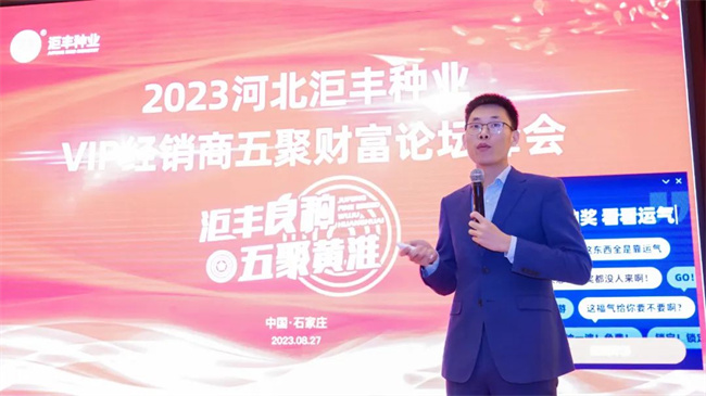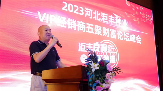 2023年8月26日,河北洰豐種業(yè)黃淮海VIP經(jīng)銷商五聚財富論壇峰會在石家莊勝利召開。行業(yè)領導、專家和300余位核心經(jīng)銷商代表齊聚一堂,交流目前種業(yè)狀況和發(fā)展趨勢,分享了“洰豐”牌系列品種銷售理念,就如何充分發(fā)揮洰豐種業(yè)品種的廣適、穩(wěn)產(chǎn)高產(chǎn)和抗病抗逆好的優(yōu)勢、挖掘市場潛力進行深入探討,凝聚共識,實現(xiàn)共創(chuàng)共贏,推動業(yè)績再上一個新臺階。