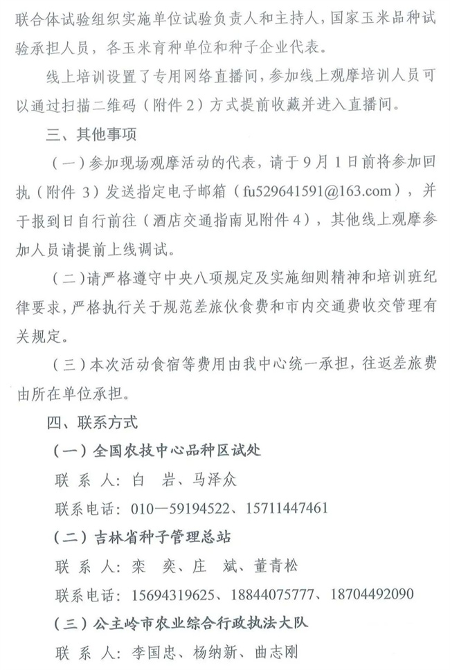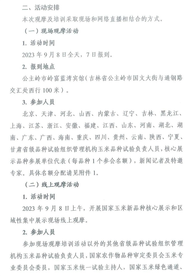 (二)培訓(xùn)交流玉米品種區(qū)試審定管理政策、生物育種、前沿技術(shù)等。