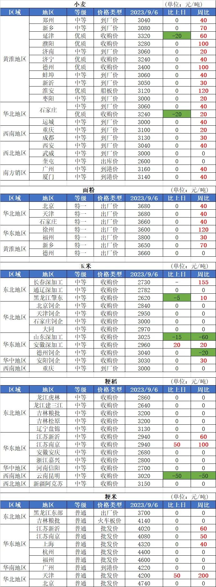 2、9月5日國內(nèi)玉米價格小幅波動,其中:南北港口、南方銷區(qū)玉米價格基本穩(wěn)定;山東地區(qū)玉米價格基本穩(wěn)定,局部價格上漲,漲幅10-30元/噸;華北地區(qū)、東北地區(qū)玉米價格基本穩(wěn)定,局部下跌,跌幅10元/噸。