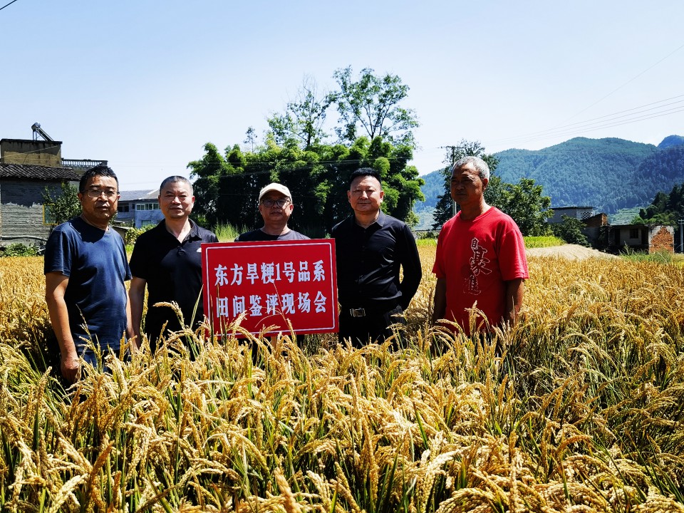 9月6日,飛仙洞村六組組長徐小雪家承包地里的一片旱稻,在陽光的照耀下泛著金色的光芒,微風拂過,稻浪翻滾、清香陣陣。“東方旱粳1號品系”田間鑒評現(xiàn)場會正在這里進行?,F(xiàn)場測產結果顯示,該品種畝產達1108斤。