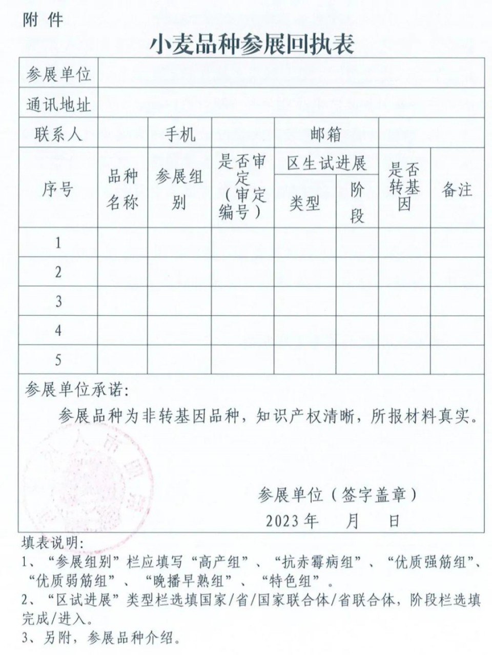 附件:小麥品種參展回執(zhí)表(見原文件圖片)