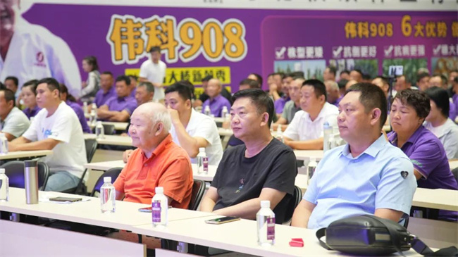 企業(yè)是市場競爭的主體,也是真正成為商業(yè)化育種和應(yīng)用性創(chuàng)新的主體,種子企業(yè)的可持續(xù)核心競爭力還是在于科技創(chuàng)新能力。秋碩種業(yè)董事長陳繼世在致辭中表示,公司自成立十五年來,不斷加大科研投入,內(nèi)提科研水平,外聯(lián)科研院所,加強(qiáng)科研攻關(guān)能力,公司科研水平和科研實力進(jìn)一步提升。陳總表示,公司目前主推品種偉科908,經(jīng)受住2021年南方銹病、青枯病,2022年的高溫?zé)岷Γ?023年前期高溫干旱、后期高溫多雨及南方銹病等不利因素連續(xù)三年考驗,相信大家也深有感觸,偉科908確實也具備成為大單品潛質(zhì),下一步,公司將攜手各位志同道合的合作伙伴,下大力氣,努力將偉科908打造成為黃淮海區(qū)域大品牌。同時,他表示,目前,公司具有多抗、廣適、高產(chǎn)優(yōu)質(zhì)的系列玉米新品種即將上市,將不斷豐富市場不同需求產(chǎn)品線,為經(jīng)銷商朋友積累更大財富。通過陳總對公司未來規(guī)劃介紹,與會經(jīng)銷商更加堅定了加深與秋碩種業(yè)合作信心!