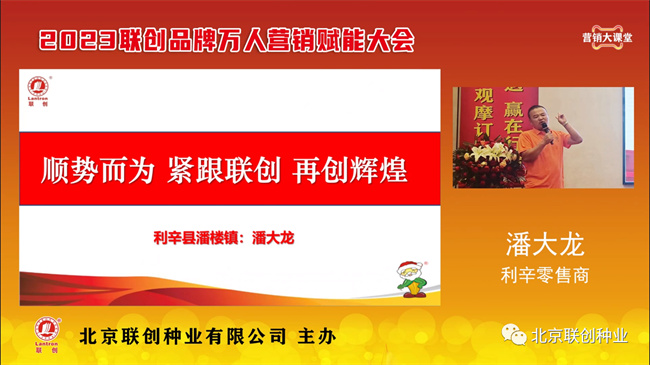 利辛縣潘樓鎮(zhèn)零售商潘大龍先生分享《順勢(shì)而為 緊跟聯(lián)創(chuàng) 再創(chuàng)輝煌》。
