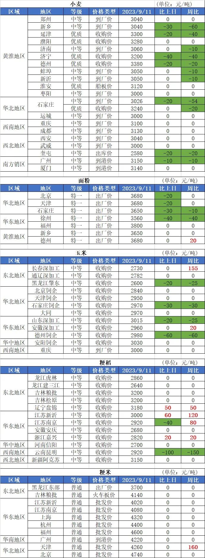 2、9月11日國內(nèi)玉米價格繼續(xù)走低,其中:南北港口、南方銷區(qū)玉米價格基本穩(wěn)定;山東地區(qū)、華北地區(qū)、東北地區(qū)玉米價格基本穩(wěn)定,局部價格下跌,跌幅10-90元/噸。