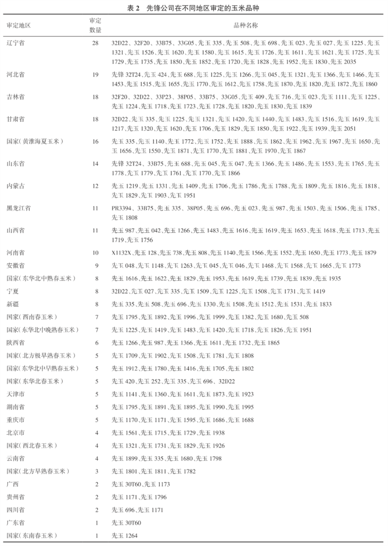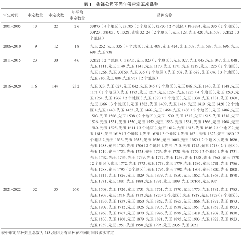 22年來(lái)先鋒種子公司在我國(guó)審定玉米品種分析