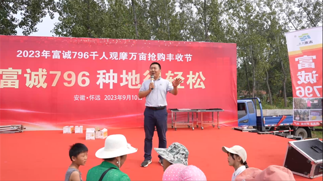 會上,安徽未來種業(yè)副總經(jīng)理苑磊對支持和關(guān)愛富誠796的合作經(jīng)銷商表示衷心的感謝,對高度認可和信任的廣大種植戶表示熱烈的歡迎。他表示,富誠796自上市推廣以來,穩(wěn)定、綜合優(yōu)勢突出,深受行業(yè)專家關(guān)注,經(jīng)銷商認可,農(nóng)民的喜愛。并強調(diào),公司會做好黃淮海市場結(jié)構(gòu)布局,聚焦品種,聚焦市場,加大宣傳力度,加強市場管理,強化技術(shù)服務(wù),搶建根據(jù)地,提高占有率,爭取早日實現(xiàn)富誠796事業(yè)的“百萬千萬”財富工程的奮斗目標。