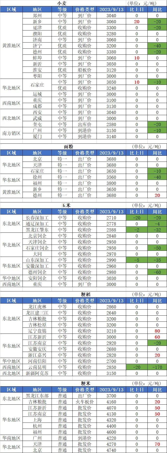 2、9月13日玉米價(jià)格持續(xù)走低,其中:華北地區(qū)、南方銷區(qū)玉米價(jià)格基本穩(wěn)定;南北港口、東北地區(qū)、山東地區(qū)玉米價(jià)格基本穩(wěn)定,局部?jī)r(jià)格下跌,跌幅10-20元/噸。