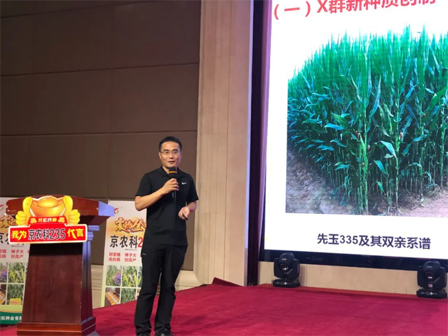 北京市農林科學院玉米研究所大田育種部副主任陳傳永博士介紹了京農科235選育背景及選育過程。陳博士表示,京農科235聚合優(yōu)勢種質資源,通過常規(guī)育種與分子標記輔助育種相結合而選育出、具有廣適、高產穩(wěn)產、抗逆抗病、資源高效的玉米新品種,在黃淮海有很好市場前景和應用價值。