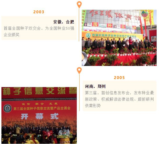 2003年,首屆全國種子信息交流與產(chǎn)品交易會(簡稱“全國種子雙交會”)在安徽合肥舉行,宣貫法規(guī)制度、解讀種業(yè)政策、引領(lǐng)產(chǎn)業(yè)方向、交流種業(yè)信息、推廣種業(yè)成果。航程從這里開啟。