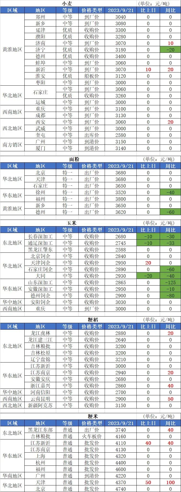 1、9月21日國內(nèi)小麥小幅漲跌,主產(chǎn)區(qū)制粉企業(yè)收購價格在1.51-1.56元/斤之間,均價1.529元/斤,預計短期內(nèi)小麥將保持震蕩運行趨勢,后期應重點關注玉米市場變動、面粉需求變動企業(yè)收購上量情況。
