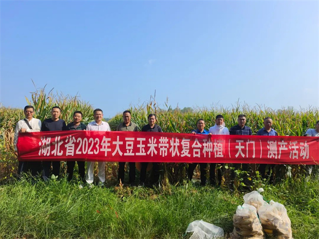 2023年8月8日,由湖北省農(nóng)業(yè)技術(shù)推廣總站與天門市農(nóng)業(yè)農(nóng)村局組成的專家組對(duì)天門市拖市鎮(zhèn)200畝漢玉919玉米大豆帶狀復(fù)合種植示范地進(jìn)行測(cè)產(chǎn),經(jīng)專家組實(shí)收測(cè)產(chǎn),畝產(chǎn)639公斤/畝,創(chuàng)湖北省春播玉米大豆帶狀復(fù)合種植高產(chǎn)新紀(jì)錄。