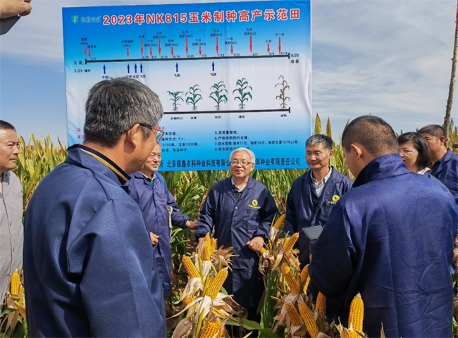 隨后,玉米所王元東副所長組織召開了 2023 年 NK815 制種高產(chǎn)鑒定研討會。專家組一致認(rèn)為,通過良種良法配套,優(yōu)良品種 NK815 在新疆伊犁實(shí)現(xiàn)了創(chuàng)噸制種目標(biāo),制種效益突出,值得在全國借鑒推廣。