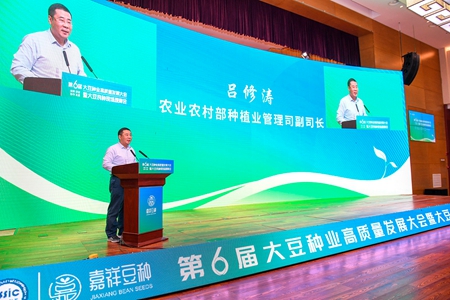 9月21日,第六屆大豆種業(yè)高質(zhì)量發(fā)展大會(huì)暨大豆良種現(xiàn)場(chǎng)觀摩會(huì)在嘉祥縣舉行。農(nóng)業(yè)農(nóng)村部種植業(yè)管理司副司長(zhǎng)呂修濤出席會(huì)議并講話,山東省農(nóng)業(yè)農(nóng)村廳黨組成員、副廳長(zhǎng)王敬東出席會(huì)議并致辭。