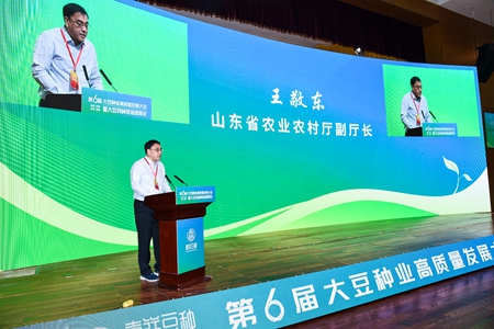 王敬東在講話中指出,山東是種業(yè)大省,先后選育推廣了登海、濟(jì)麥、齊黃等多個(gè)系列的優(yōu)良品種,其中有25個(gè)品種入選2022年國(guó)家農(nóng)作物優(yōu)良品種推廣目錄。山東也是全國(guó)大豆種業(yè)的重要省份,以濟(jì)寧嘉祥為核心的大豆良種供給量占整個(gè)黃淮海地區(qū)70%以上,齊黃、圣豆、菏豆、鄆豆等高產(chǎn)優(yōu)質(zhì)的品種在糧油作物單產(chǎn)提升中發(fā)揮著重要的作用。山東大豆種業(yè)基礎(chǔ)扎實(shí),優(yōu)勢(shì)突出,希望通過此次會(huì)議,匯聚各方力量和資源,共同推動(dòng)山東大豆種業(yè)高質(zhì)量發(fā)展。