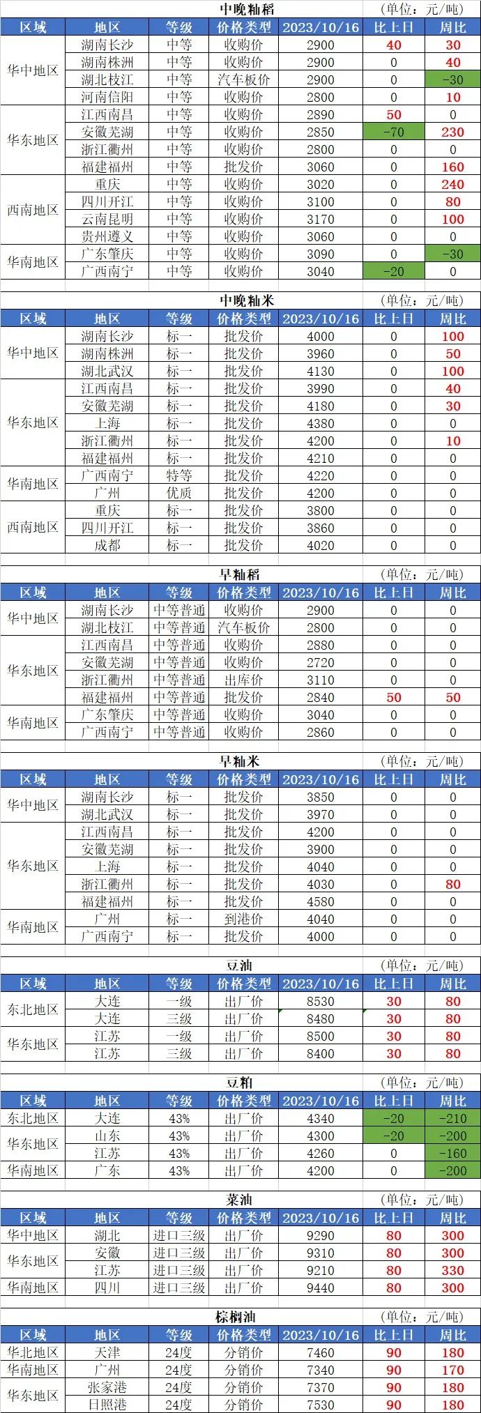 2、10月16日玉米價格小幅下跌,其中:南北港口、南方銷區(qū)玉米價格基本穩(wěn)定;華北地區(qū)、東北地區(qū)玉米價格基本穩(wěn)定,局部價格小幅下跌,跌幅10-80元/噸。