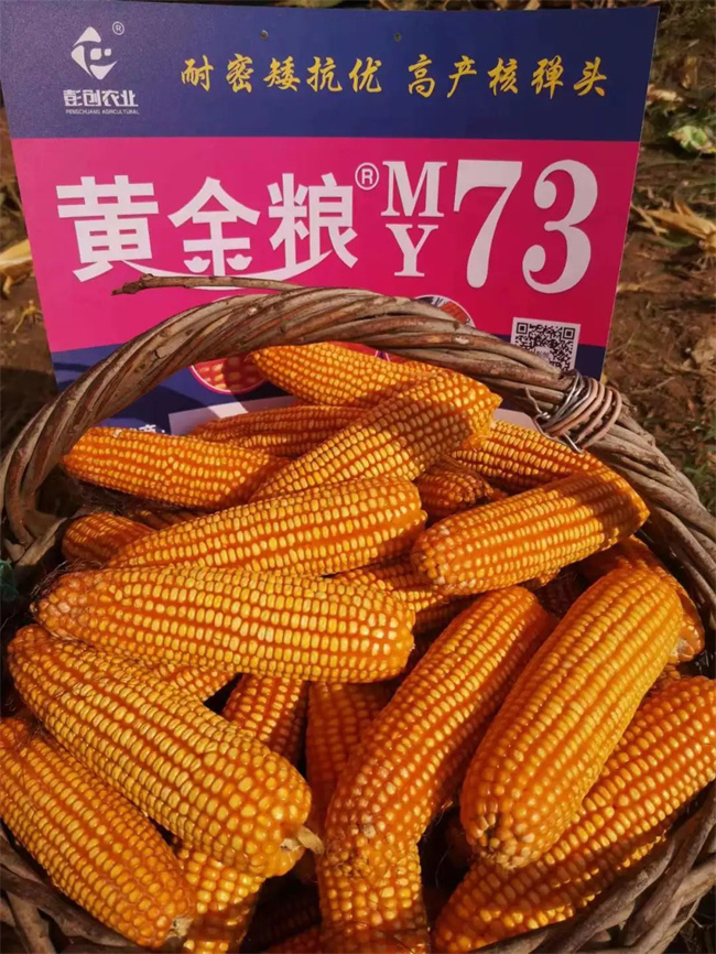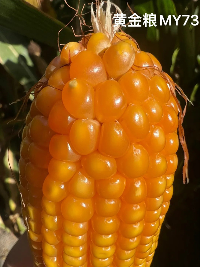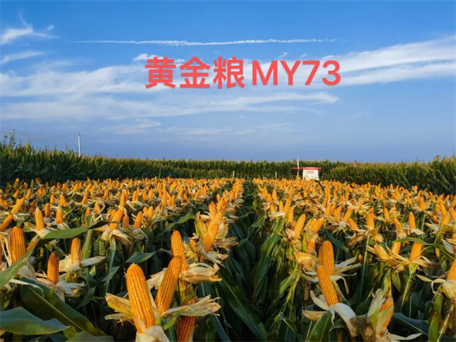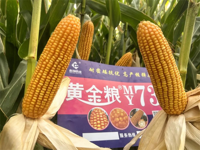 黃金糧MY73由河南省彭創(chuàng)農(nóng)業(yè)科技有限公司(母公司河南省豫玉種業(yè)股份有限公司)研發(fā)團隊歷經(jīng)多年潛心研究選育的一個矮稈、多抗、密植、穩(wěn)產(chǎn)、高產(chǎn)、優(yōu)質(zhì)的玉米品種,現(xiàn)已推廣四年,田間表現(xiàn)尤其突出,黃淮海各地高產(chǎn)捷報頻傳,多地多次創(chuàng)下畝產(chǎn)超過2000斤的高產(chǎn)奇跡。黃金糧MY73以耐密,廣適,多抗等安全基因為依托,發(fā)掘其高產(chǎn)、黃金品質(zhì)、脫水快、宜機收等特點,為黃淮海玉米增產(chǎn)增收保駕護航,深受種植戶青睞。