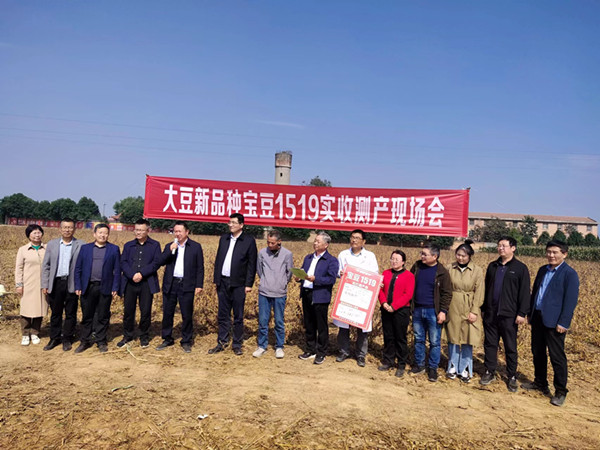 經(jīng)專家組實打測產(chǎn),“寶豆1519”畝產(chǎn)達301.8公斤創(chuàng)寶雞市夏播大豆單產(chǎn)新高。寶豆1519是利用人工雜交,通過系統(tǒng)選育方法育成的大豆新品種,2023年通過陜西省農(nóng)作物品種審定委員會審定,編號為陜審豆20230001號。該品種屬夏播中熟品種,平均株高87.8厘米,主莖節(jié)數(shù)15.4節(jié),有效分枝2.9個,單株有效莢數(shù)52.9個,單株粒數(shù)94.9粒,單株粒重21.5克,百粒重21.9克。連續(xù)三年參加省夏播大豆區(qū)域試驗、生產(chǎn)試驗,增產(chǎn)點率達100%。該品種豐產(chǎn)性突出,品質(zhì)優(yōu),抗逆性強,耐密植,在極端高溫條件下仍能表現(xiàn)出較高的產(chǎn)量優(yōu)勢。