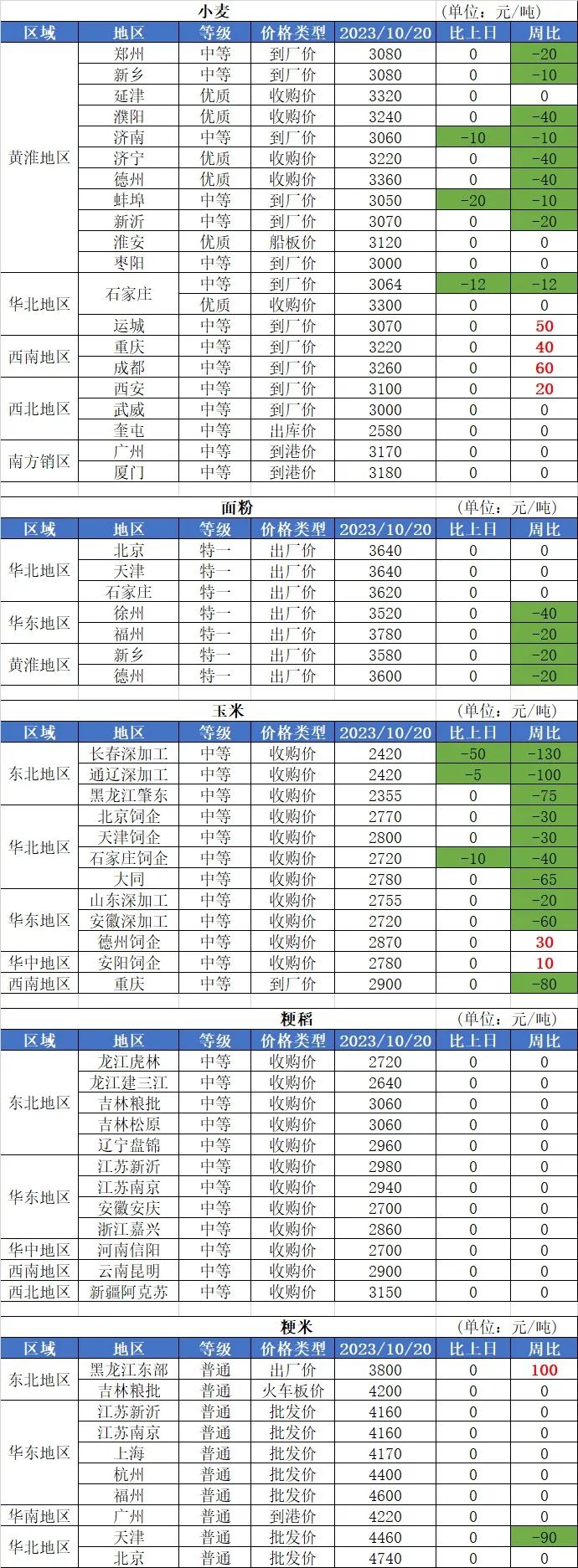 2、10月20日玉米價(jià)格穩(wěn)中有跌,其中:南方銷(xiāo)區(qū)玉米價(jià)格基本穩(wěn)定;南北港口玉米價(jià)格小幅下跌,跌幅20元/噸;華北地區(qū)、東北地區(qū)玉米價(jià)格基本穩(wěn)定,局部?jī)r(jià)格小幅下跌,跌幅10-60元/噸。