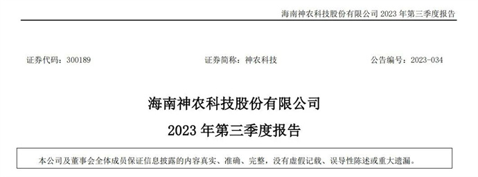 神農(nóng)科技:2023年前三季度凈利-1163.82萬,虧損減少49.7%