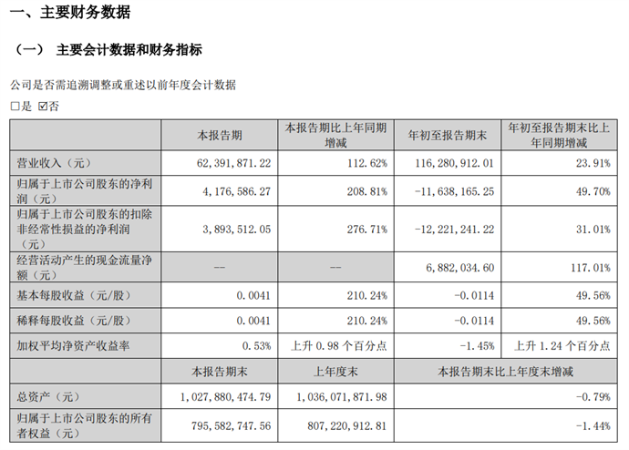 10月20日,神農(nóng)科技發(fā)布2023年前三季度報,報告期內(nèi),公司前三季度營收約1.16億元,同比增加23.91%;歸屬于上市公司股東的凈利潤虧損約1164萬元,同比增加49.7%;基本每股收益虧損0.0114元,同比增加49.56%。