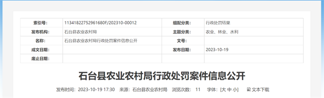 安徽省石臺縣農(nóng)業(yè)農(nóng)村局公開行政處罰案件信息,包括1例種子案