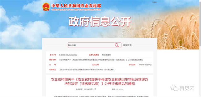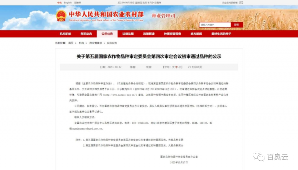 2023年10月17日,農(nóng)業(yè)農(nóng)村部種業(yè)管理司官網(wǎng)發(fā)布《關(guān)于第五屆國(guó)家農(nóng)作物品種審定委員會(huì)第四次審定會(huì)議初審?fù)ㄟ^(guò)品種的公示》,公布了37個(gè)轉(zhuǎn)基因玉米品種和14個(gè)轉(zhuǎn)基因大豆品種通過(guò)初審,這是我國(guó)第一次審定轉(zhuǎn)基因品種,標(biāo)志著生物技術(shù)育種的所有環(huán)節(jié)都已通暢,轟轟烈烈的應(yīng)用大潮即將到來(lái),對(duì)我國(guó)乃至全球未來(lái)農(nóng)業(yè)將產(chǎn)生重要影響。