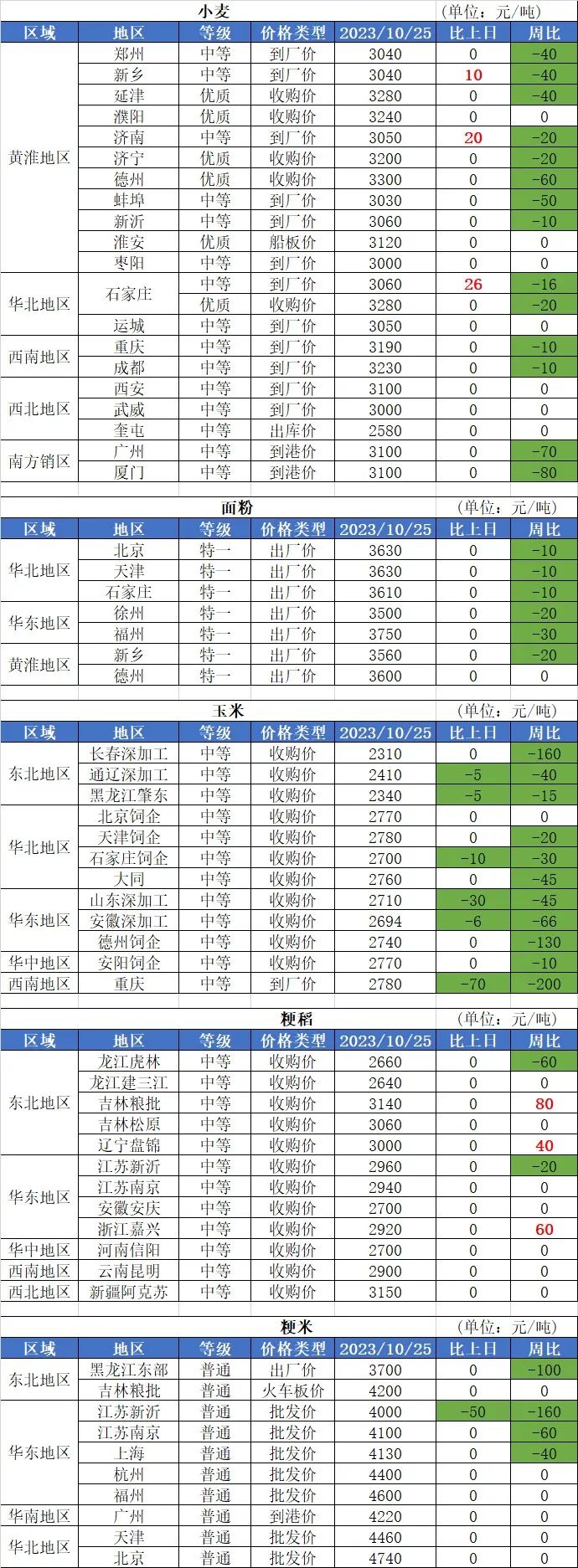2、10月25日玉米價(jià)格穩(wěn)中有跌,其中:南方銷區(qū)玉米價(jià)格基本穩(wěn)定;南北港口玉米價(jià)格基本穩(wěn)定,局部?jī)r(jià)格小漲,漲幅20元/噸;華北地區(qū)、東北地區(qū)玉米價(jià)格基本穩(wěn)定,局部?jī)r(jià)格小幅下跌,跌幅10-20元/噸。