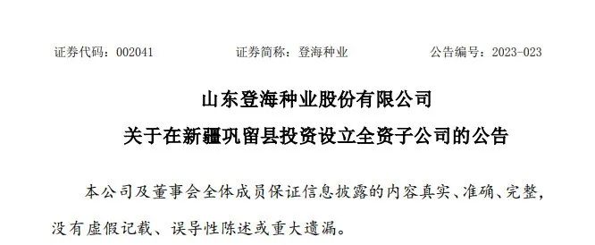 10月27日,山東登海種業(yè)股份有限公司(以下簡(jiǎn)稱“登海種業(yè)”)發(fā)布公告,稱將出資1億元(公司劃撥7053萬元的資產(chǎn)和2947萬元的貨幣資金)在新疆鞏留縣投資設(shè)立全資子公司“伊犁登海種業(yè)有限公司”。