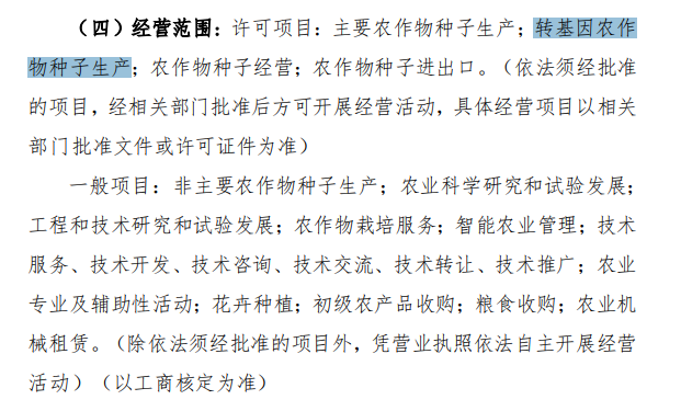 新公司經(jīng)營涉及轉(zhuǎn)基因農(nóng)作物種子生產(chǎn)