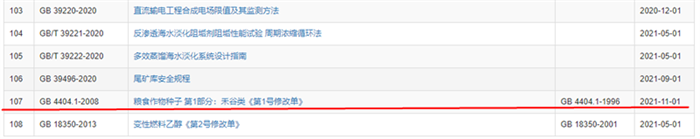 國家市場監(jiān)督管理總局和國家標準化管理委員會2020年10月11日發(fā)布中華人民共和國國家標準2020年第21號公告,批準發(fā)布106項國家標準和2項國家標準修改單,其中包括GB 4404.1-2008糧食作物種子 第1部分:禾谷類《第1號修改單》,實施日期為2021年11月1日。《修改單》對糧食作物種子國家標準部分內(nèi)容作出修改,具體如下: