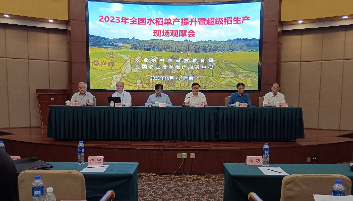 10月27日,受農(nóng)業(yè)農(nóng)村部科技教育司委托,全國農(nóng)業(yè)技術(shù)推廣服務中心在廣西南寧召開全國水稻單產(chǎn)提升暨超級稻生產(chǎn)現(xiàn)場觀摩會。參會代表現(xiàn)場觀摩了廣西水稻產(chǎn)能提升行動超級稻高產(chǎn)高效技術(shù)賓陽示范基地和廣西鴻發(fā)米業(yè)有限公司。
