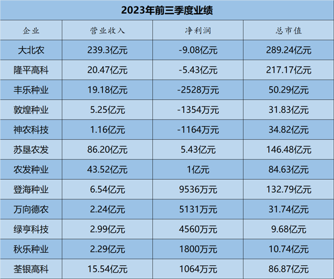 豐樂、敦煌、神農(nóng)科技等多家頭部種企虧損